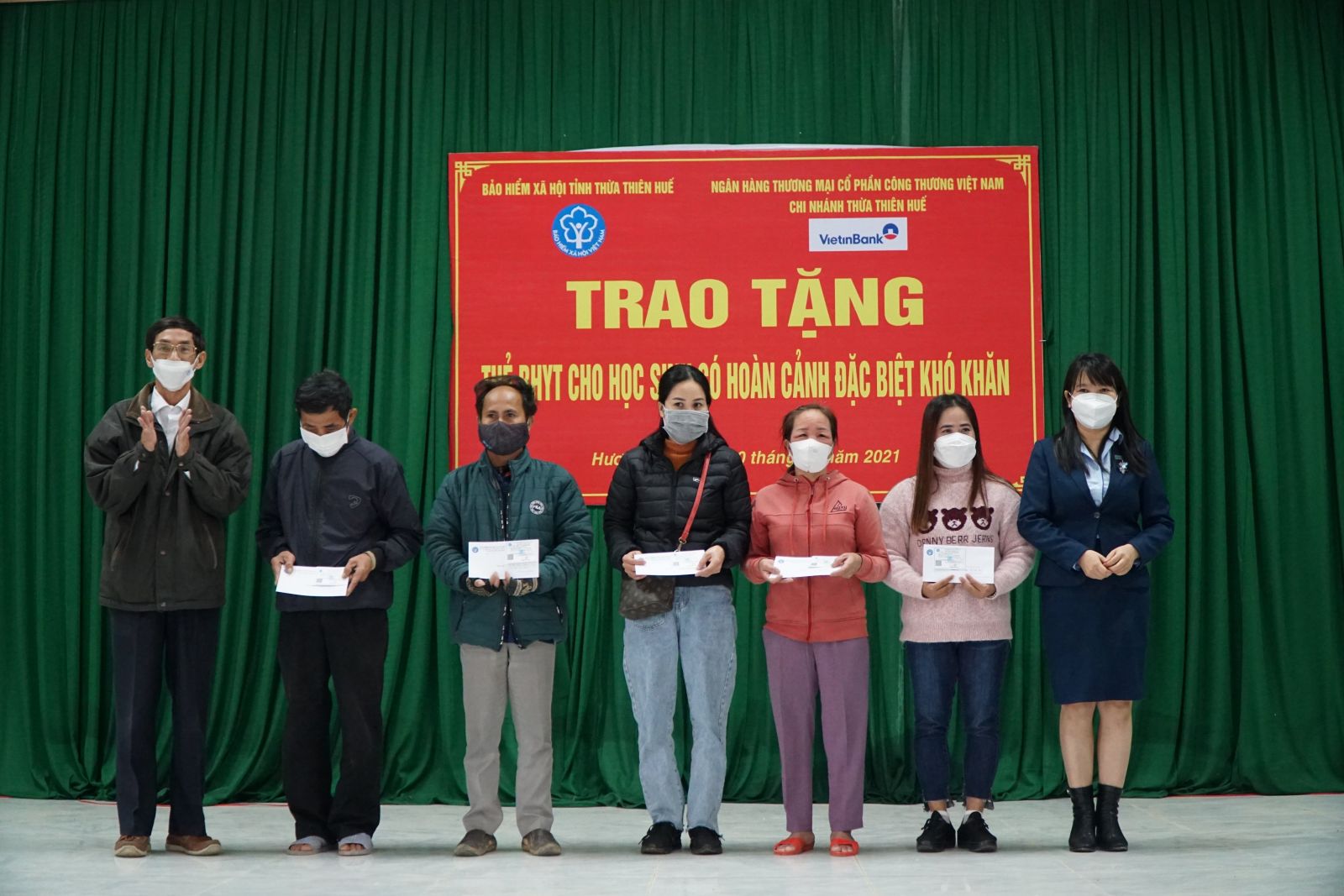 HNN.VN - Chiều 20/12, Bảo hiểm Xã hội tỉnh phối hợp với Ngân hàng TMCP Công thương Việt Nam – Chi nhánh Huế tặng 72 thẻ BHYT cho học sinh có hoàn cảnh đặc biệt khó khăn bị ảnh hưởng bởi dịch bệnh COVID-19 trên địa bàn xã Bình Tiến, TX. Hương Trà.