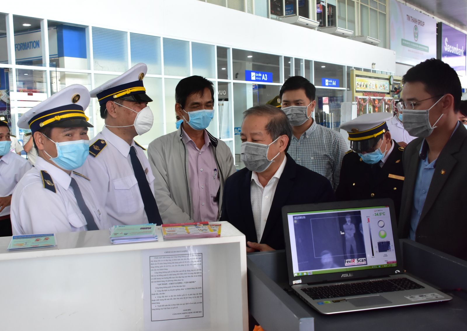 Chủ tịch UBND tỉnh kiểm tra khu vực đo thân nhiệt cho hành khách tại sân bay