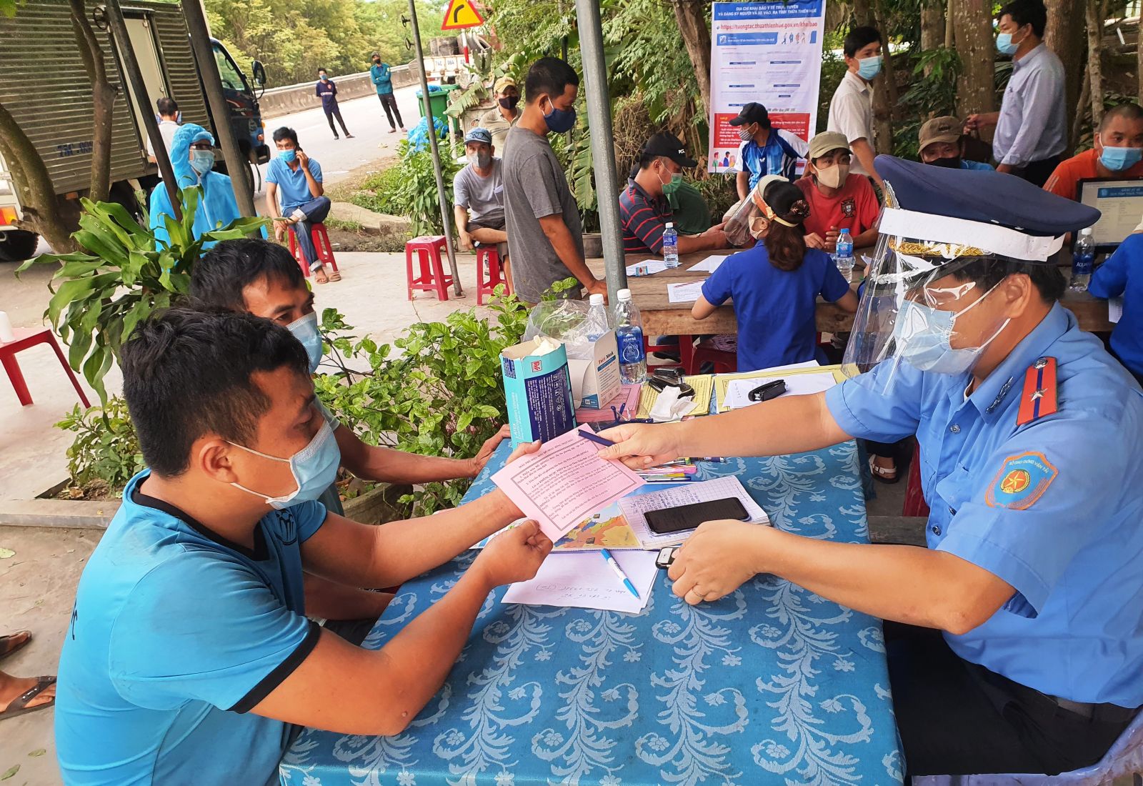 Lực lượng chức năng cấp thẻ cho các lái xe vào địa bàn Thừa Thiên Huế