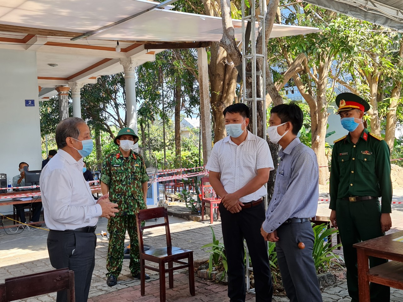 Chủ tịch UBND tỉnh Phan Ngọc Thọ kiểm tra, động viên lực lượng làm nhiệm vụ tại chốt kiểm soát y tế thuộc thị trấn Lăng Cô, Phú Lộc