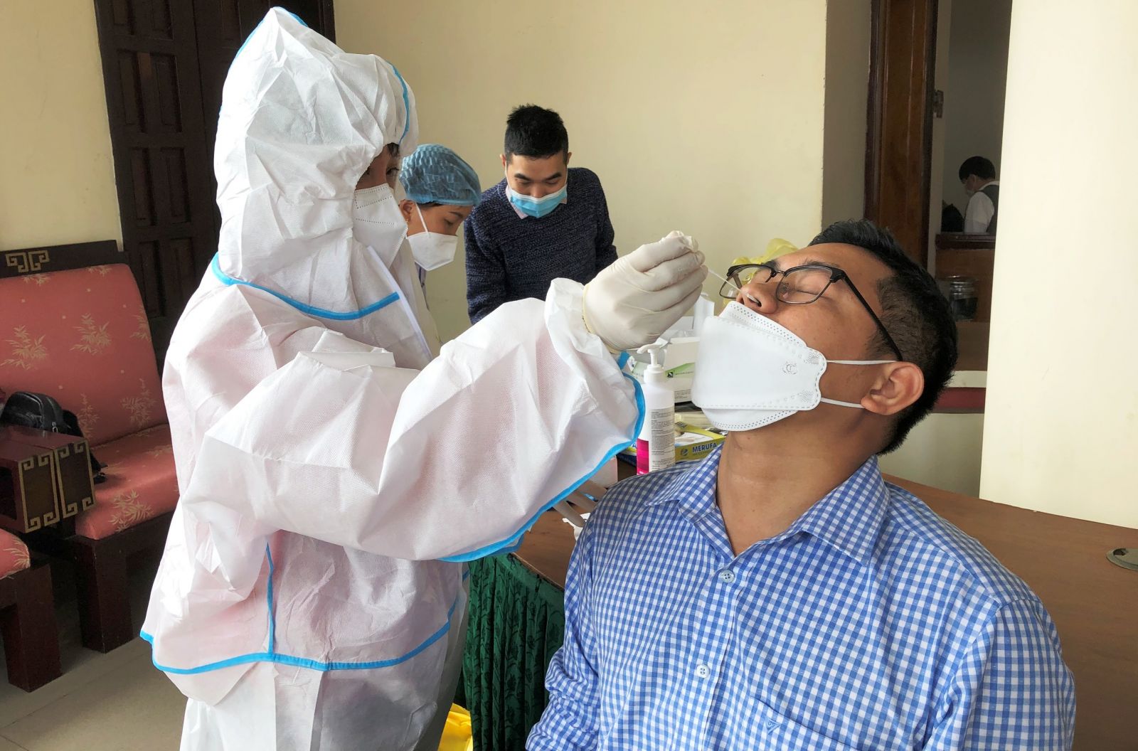 Nhân viên CDC lấy mẫu tầm soát dịch tại Văn phòng UBND tỉnh