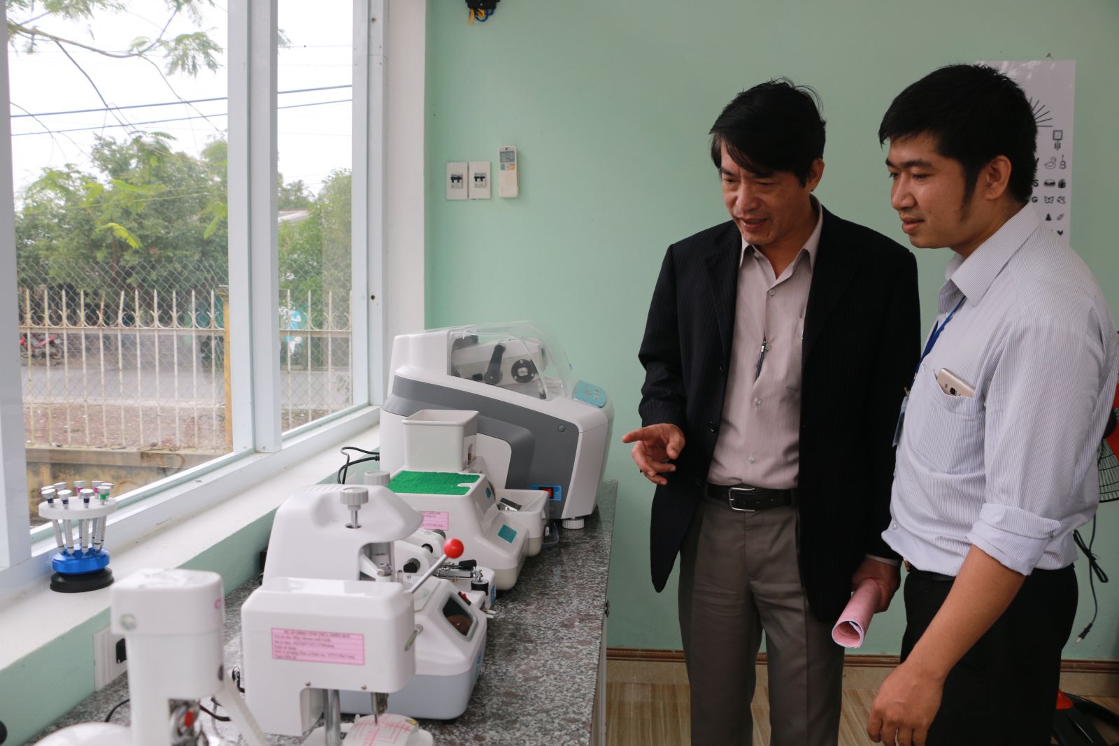 Đại diện lãnh đạo Sở y tế thẩm định kiểm tra trang thiết bị tại đơn vị khúc xạ huyện Phú Vang
