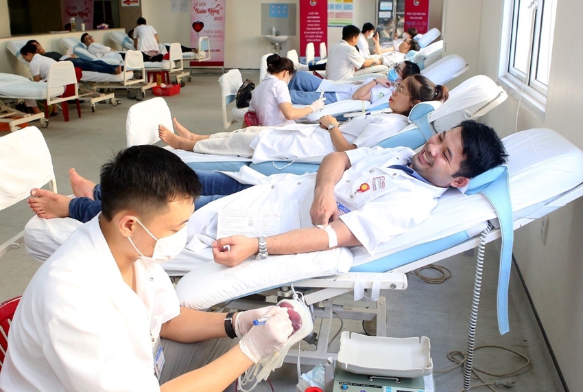 | Thanh niên các bệnh viện dự hội nghị tham gia hiến máu tình nguyện tại BVTW Huế |