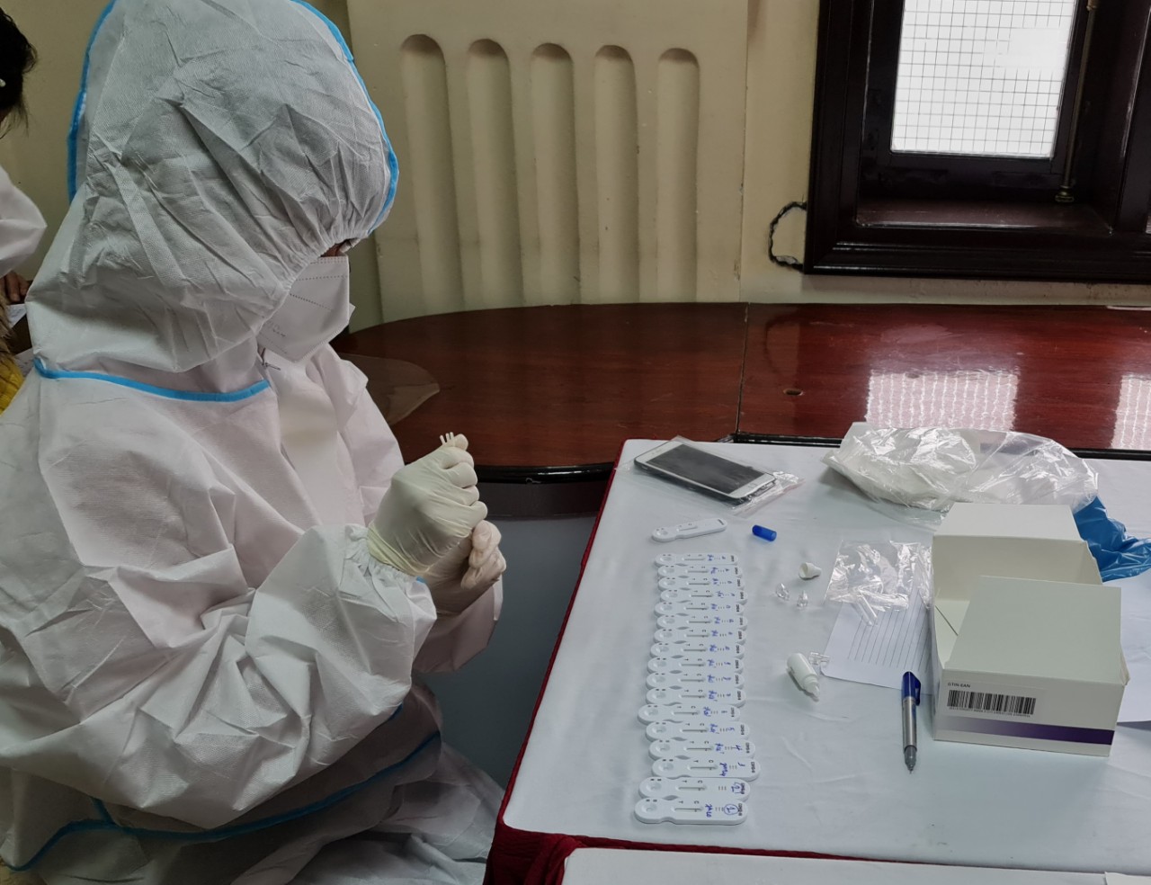 Nhân viên CDC lấy mẫu gộp xét nghiệm vi rút SARS- CoV-2