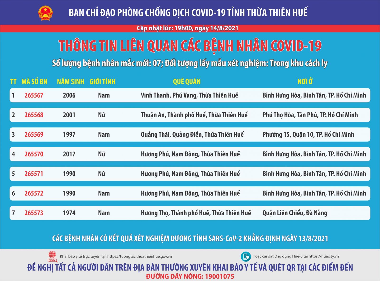 HNN.VN - Tính đến tối 14/8, Thừa Thiên Huế có 267 trường hợp ca bệnh COVID-19 ghi nhận từ ngày 28/4 đến nay. Trong số này, có 10 đã khỏi bệnh và 7 ca mới được xác định trong ngày 14/8.
