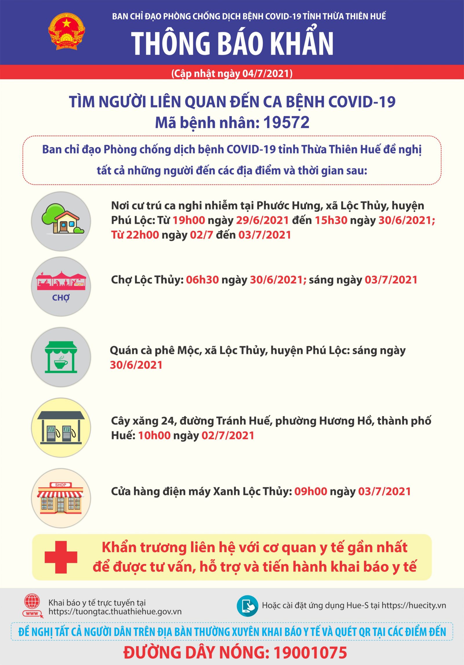 Ngày 1/7, ở tại Lao Bảo tỉnh Quảng Trị, có đến Gara ô tô Đức Nhân, Cửa khẩu Lao Bảo, Quảng Trị, tiếp xúc với anh Lê Văn H. (quê quán ở thôn Đông Lái, xã Phong Thu, huyện Phong Điền; lúc 17h cùng ngày anh H. đã về Phong Điền).