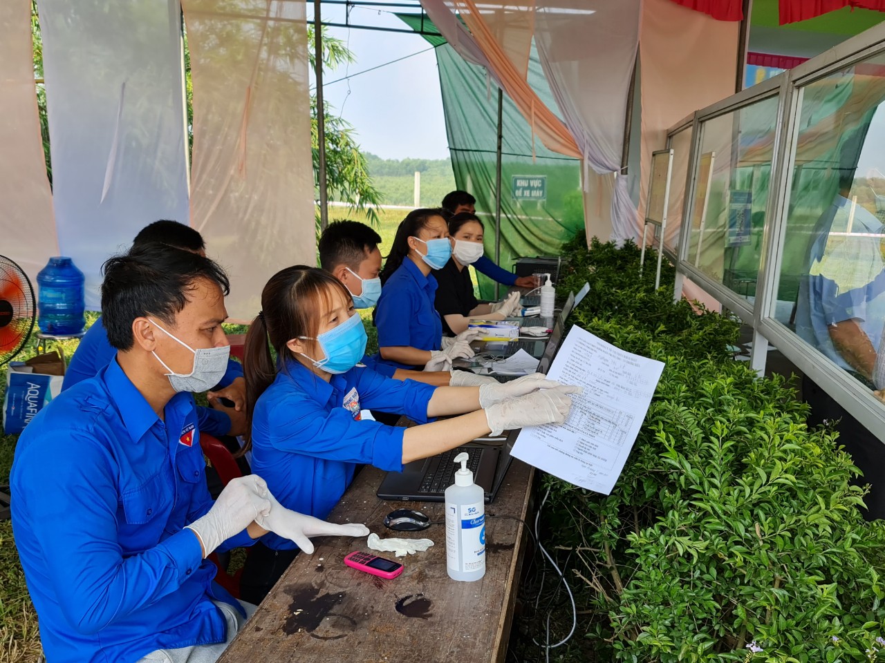 Tình nguyện viên khai báo y tế cho du khách và người dân tại chốt kiểm soát trên QL1A huyện Phong Điền giáp với tỉnh Quảng Trị