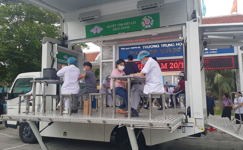Xe tiêm chủng lưu động của CDC sẵn sàng phục vụ theo nhu cầu đăng ký tiêm của các đơn vị