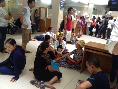 Bệnh nhân vạ vật chờ khám bệnh tại một bệnh viện lớn ở Hà Nội