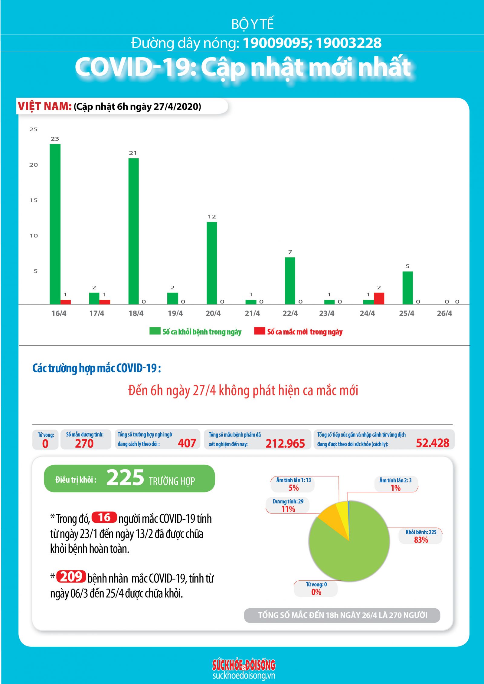 Nếu tính từ chiều ngày 24/4, có 2 ca mắc mới là du học sinh trở về từ Nhật Bản thì hôm nay Việt Nam bước vào ngày thứ 3 không ghi nhận ca mắc mới.