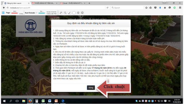 Truy cập website www.tiemvacxin.vn màn hình hiển thị như sau và mọi người làm theo các bước hướng dẫn để đăng kí.