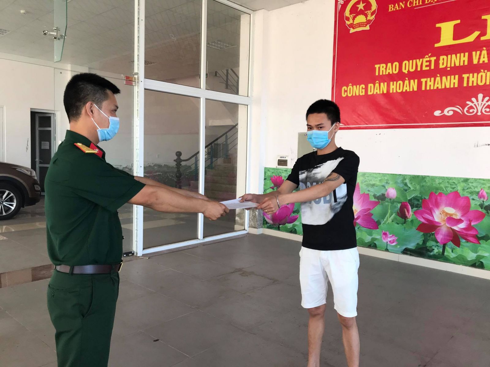 Trao giấy quyết định hoàn thành cách ly cho công dân
