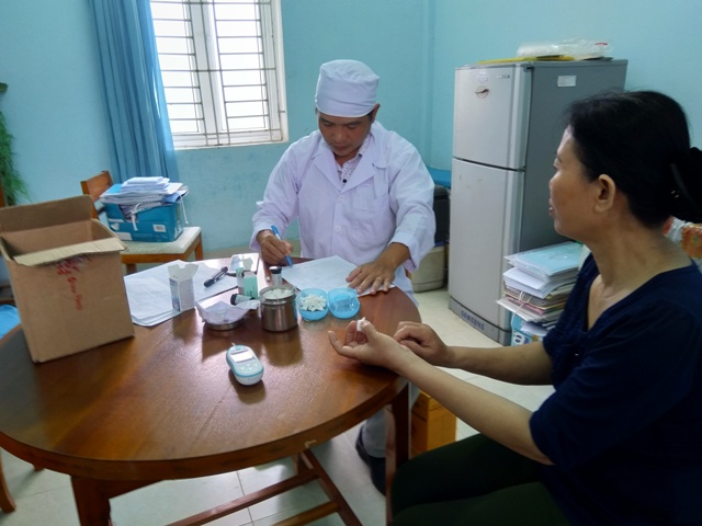 Xét nghiệm đường máu kiểm tra bệnh ĐTĐ cho người dân tại xã Quảng Phú