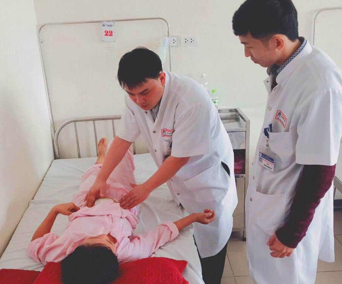 Bác sĩ Xuân (giữa) khám bệnh cho bệnh nhân