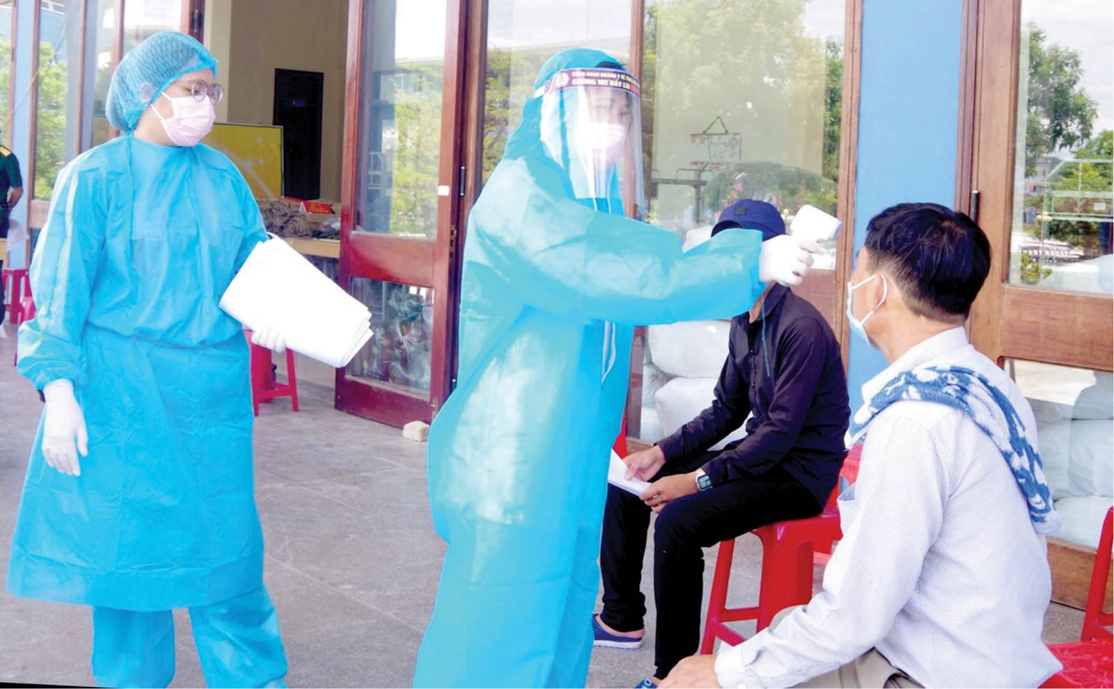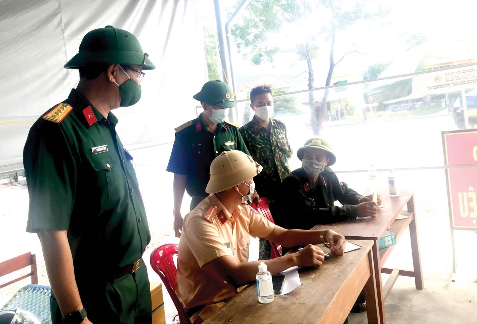 Thời tiết nắng nóng, có những ngày nóng lên hơn 40 độ, hơi nóng từ mặt đất bốc lên cứ phả vào mặt, vào người, những lưng áo luôn ướt đẫm mồ hôi, nhưng cán bộ, chiến sĩ vẫn luôn miệt mài với công việc hướng dẫn người dân khai báo, tiếp nhận và bố trí trung chuyển đi cách ly. Từng đoàn người, từng dòng xe nối đuôi nhau rời chốt, đến các khu cách ly. Bà con tạm yên tâm vì có chỗ ngả lưng sau nhiều giờ di chuyển và đợi chờ, còn những người lính họ vẫn ở đó, bám chốt và “căng mình” với công việc nơi “điểm nóng” chống dịch.