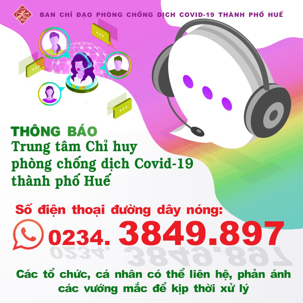 Để đáp ứng yêu cầu truy vết, xử lý khẩn cấp các vấn đề trong phòng chống dịch ở giai đoạn này, UBND TP. Huế đã kích hoạt Trung tâm chỉ huy phòng chống dịch COVID-19 để các địa phương, tổ chức, cá nhân trên địa bàn phản ánh, trao đổi thông tin liên quan đến công tác phòng chống dịch của thành phố.