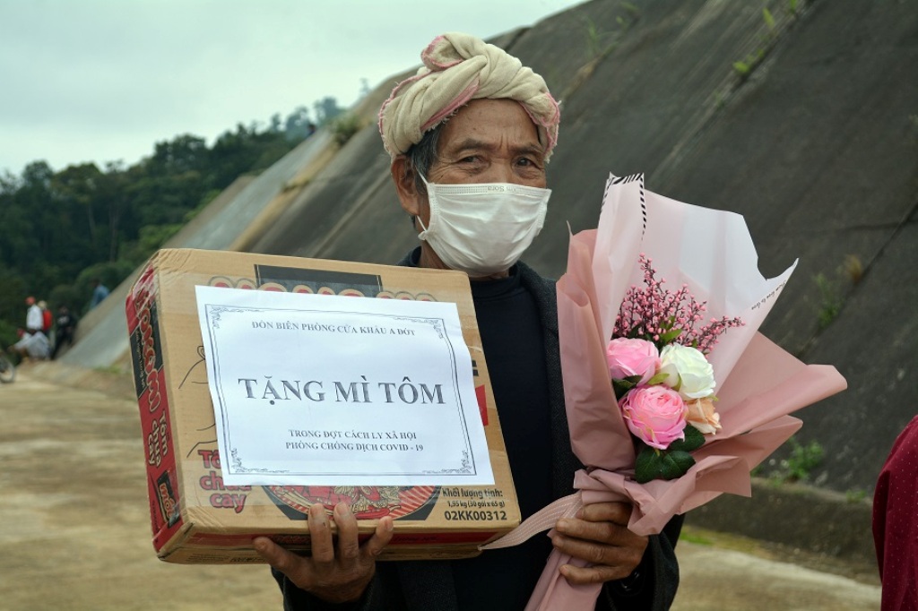 Tại buổi bàn giao, Đồn Biên phòng cửa khẩu A Đớt đã tặng quà gồm gạo, mì tôm, khẩu trang và một số vật dụng y tế cho người dân và lực lượng vũ trang Lào.
