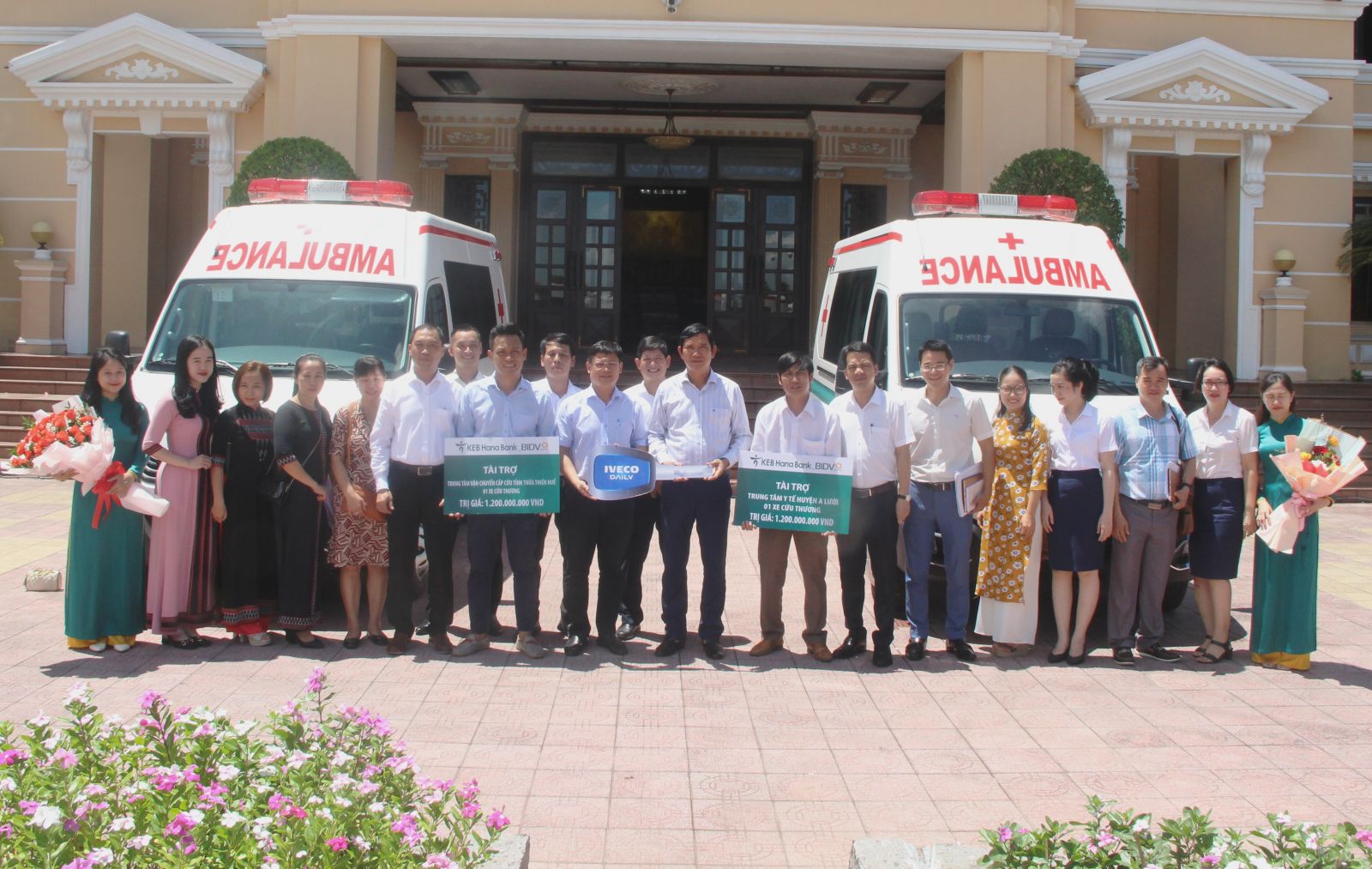 2 xe cứu thương với đầy đủ trang thiết bị hiện đại, mỗi xe trị giá 1,2 tỷ đồng do Ngân hàng TMCP Đầu tư và Phát triển Việt Nam (BIDV) và đối tác chiến lược Ngân hàng Hanabank Hàn Quốc tài trợ.
