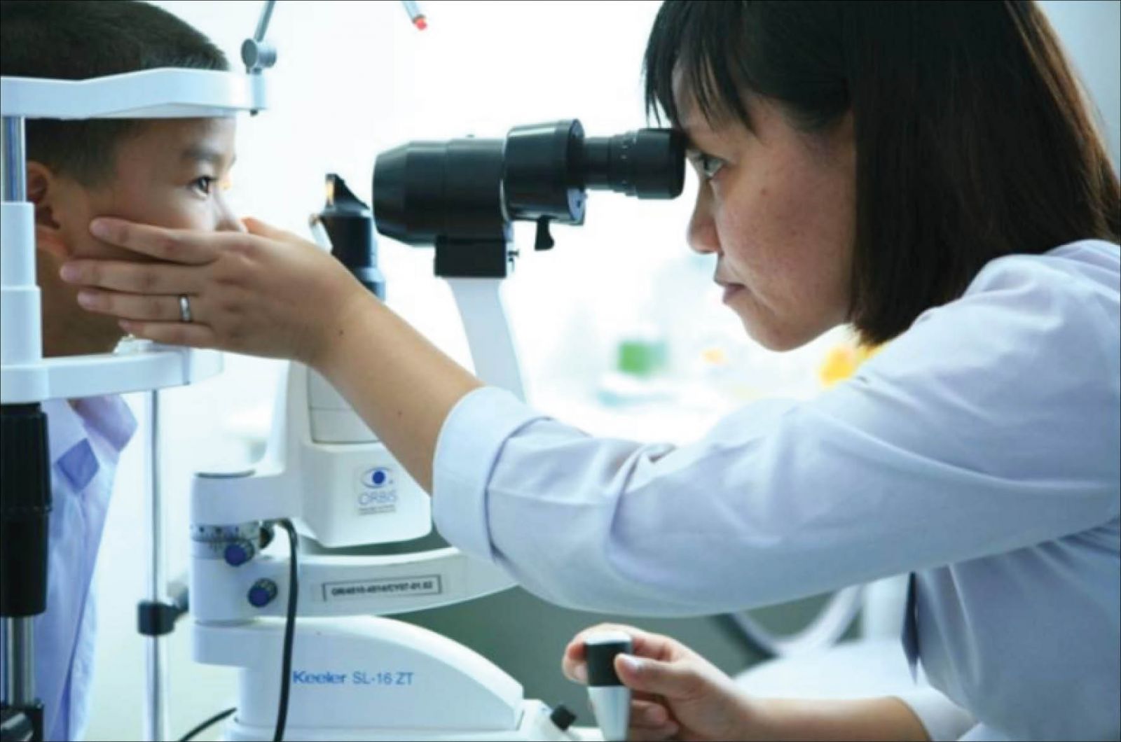 Ths.BS.Hồ Hoàng Phương Thảo đang kiểm tra mắt cho trẻ