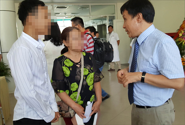 Em PVC và mẹ chia sẻ niềm vui với GS. Phạm Như Hiệp dịp thành lập Trung tâm ghép mô/tạng của BV Trung ương Huế