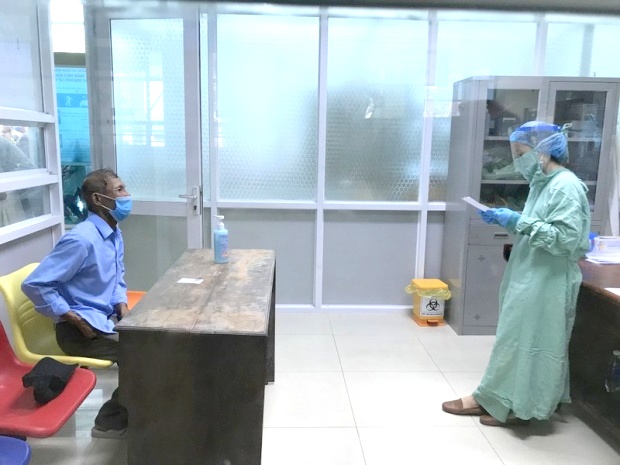Tất cả bệnh nhân vào Bệnh viện đều được phân luồng và sàng lọc: Xuất trình chứng minh nhân dân, đo nhiệt độ, khai báo y tế, khai thác yếu tố dịch tễ, triệu chứng lâm sàng và được hướng dẫn biện pháp chủ động phòng chống dịch: Mang khẩu trang, sát khuẩn tay nhanh...