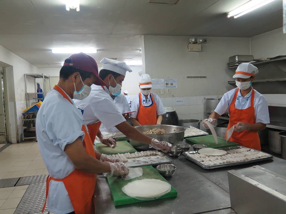 Chế biến bữa ăn cho công nhân tại bếp ăn tập thể của Công ty TNHH Canon Việt Nam (KCN Thăng Long, Hà Nội). Ảnh tư liều (minh họa): TN