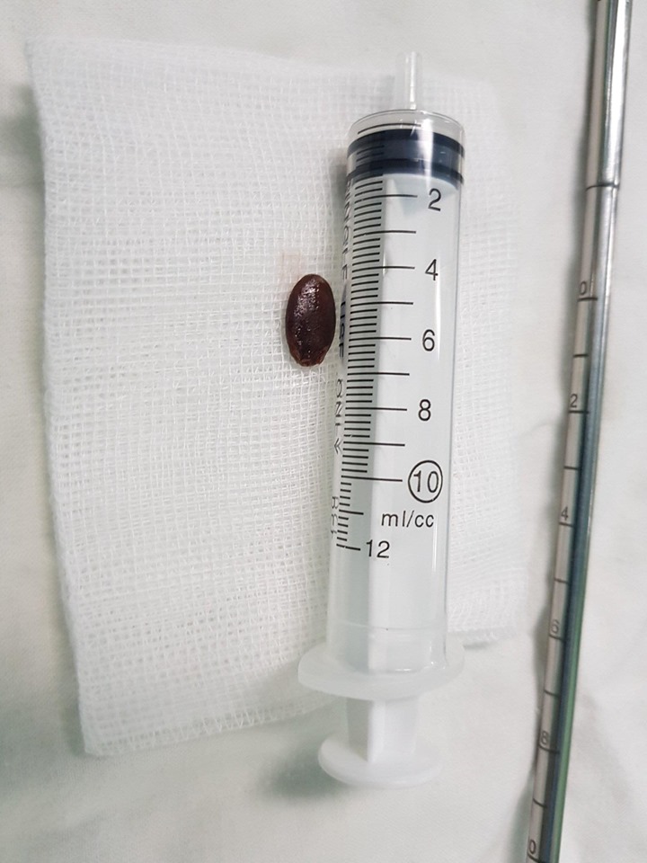 Hình ảnh hạt dưa được lấy ra từ phế quản bệnh nhi