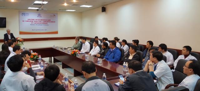 Các học viên cập nhật chuyên đề ngoại tiêu hóa, phẫu thuật nội soi của giảng viên đến từ Cộng hòa Pháp