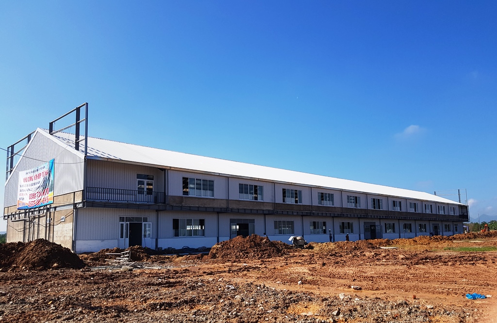 Toàn cảnh toà nhà nơi thu dung và điều trị bệnh nhân không triệu chứng hoặc triệu chứng nhẹ đặt tại cơ sở Công ty cổ phần Hello Quốc tế Việt Nam (Khu công nghiệp Tứ Hạ)