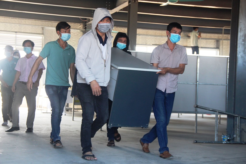 Được thiết lập từ nhiều ngày trước đó, cả hai khu thu dung này đến thời điểm này đang được đẩy nhanh để hoàn thiện các khâu cuối cùng như xây dựng hệ thống vệ sinh, chạy đường dây điện bên trong các giường bệnh, làm tuyến đường bên ngoài…