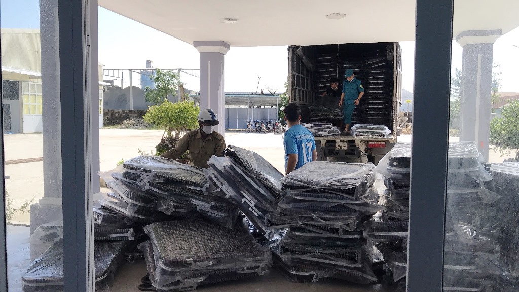 Rất nhiều vật dụng được vận chuyển đưa vào hai khu thu dung và điều trị F0 không triệu chứng hoặc triệu chứng nhẹ để chuẩn bị hoạt động
