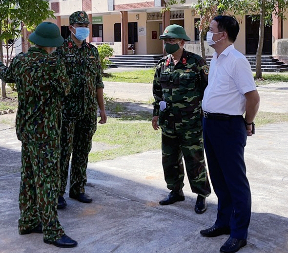 Ông Phan Thiên Định (bìa phải) kiểm tra công tác chuẩn bị cơ sở hạ tầng đón công dân từ TP. Hồ Chí Minh về cách ly