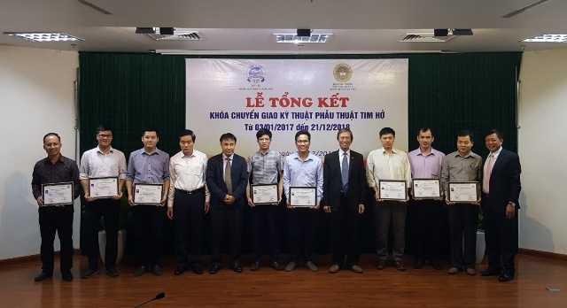 Dịp này, BV Trung ương Huế cấp chứng chỉ đào tạo, chuyển giao kỹ thuật phẫu thuật tim hở cho 24 y, bác sĩ BV Quân y 103 hoàn thành tốt các khóa học trên,