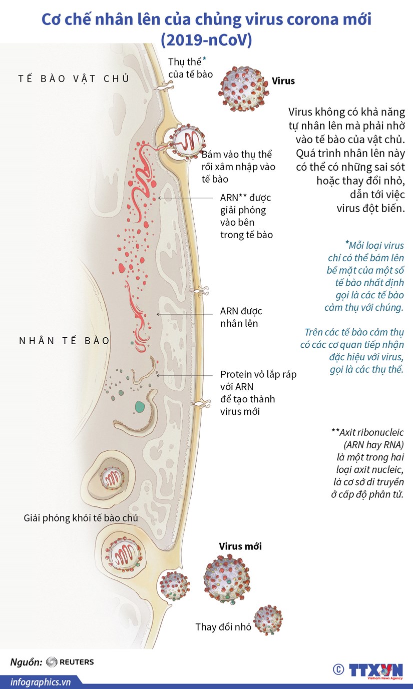 Virus corona mới (2019-nCoV) không có khả năng tự nhân lên mà phải nhờ vào tế bào của vật chủ. Quá trình nhân lên này có thể có những sai sót hoặc thay đổi nhỏ, dẫn tới việc virus đột biến.