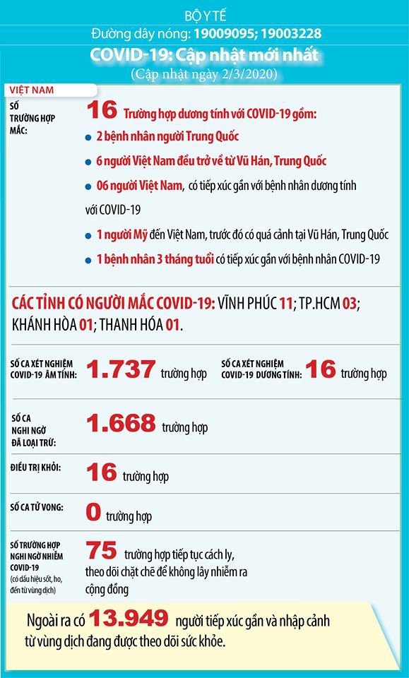 Theo cập nhật mới nhất của Bộ Y tế, tính đến ngày 3/3, cả nước còn 75 trường hợp đang tiếp tục cách ly theo dõi do nghi nhiễm Covid-19.