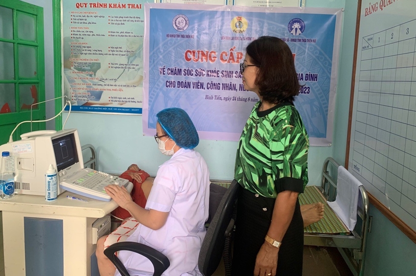 Hội Kế hoạch hoá gia đình tỉnh cũng khám sức khỏe, siêu âm, khám phụ khoa cho đoàn viên, người lao động. Đơn vị cũng lấy các mẫu xét nghiệm chức năng gan, thận, lấy mẫu tầm soát ung thư cổ tử cung và cấp phát hơn 1.000 bao cao su cũng như thuốc tránh thai các loại.