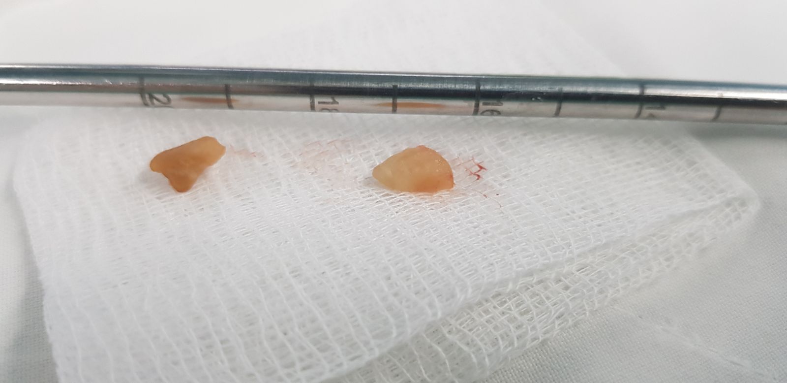 Đến 16h30 cùng ngày, các bác sĩ đã lấy ra được dị vật là hai mảnh đậu phộng nằm ở phế quản gốc 2 bên. Sau phẫu thuật, bệnh nhi tỉnh táo, tự thở và được chuyển về khoa Nhi tiếp tục điều trị nội khoa.