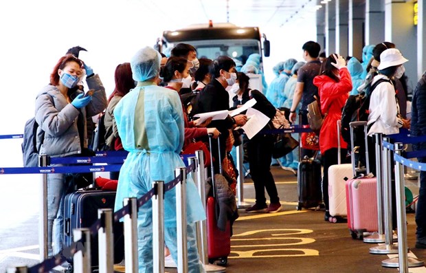 Công dân Việt Nam từ Frankurt (Đức) trở về nước làm thủ tục tại Sân bay Vân Đồn