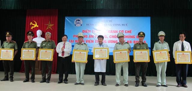 Tình huống giả định, bệnh viện bị một nhóm đối tượng mang vũ khí vào bất ngờ khống chế bảo vệ, nhân viên bệnh viện, bệnh nhân và đưa ra các yêu sách. Ngay sau khi sự việc xảy ra, Bệnh viện Trung ương Huế triển khai các phương án vận hành cơ chế, gồm thông tin, báo cáo, chỉ đạo, điều hành với các ban phòng của bệnh viện và lực lượng chức năng địa phương để khống chế, tiêu diệt khủng bố và giải thoát con tin.