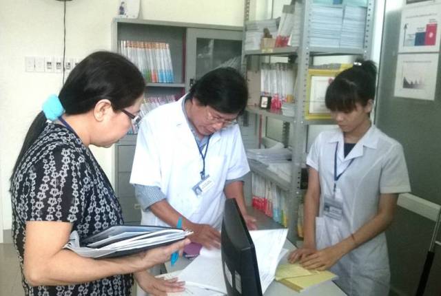 Cán bộ y, bác sĩ kiểm tra hồ sơ bệnh nhân điều trị Methadone