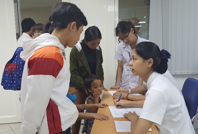 Các phụ huynh đăng ký khám sàng lọc dị tật cho trẻ