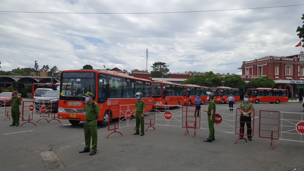 Lực lượng chức năng giám sát các hoạt động đón đoàn nhằm đảm bảo an toàn phòng dịch