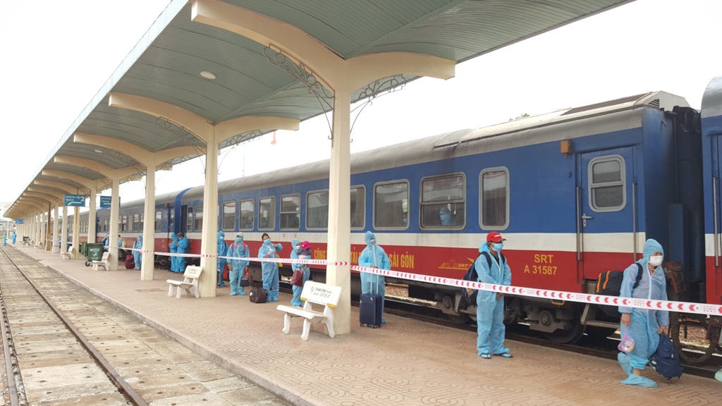 Trước lúc tàu khởi hành tại Ga Sài Gòn vào chiều 29/7, người dân được lực lượng chức năng Ga Sài Gòn bố trí ngồi cách ly trên 10 toa tàu, mỗi toa khoảng 30 người và được giám sát kiểm tra y tế chặt chẽ, 100% được xét nghiệm âm tính cách trước thời điểm lên tàu 72 giờ. Tại thời điểm này, bà con được Ga Huế phối hợp với các lực lượng y tế, công an, quân đội... hướng dẫn phân luồng ra cổng số 1 nhà Ga và lần lượt lên xe đi thẳng về khu cách ly T4 (Khu vực Trường nghiệp vụ Thuế, đường Phạm Văn Đồng, TP. Huế).