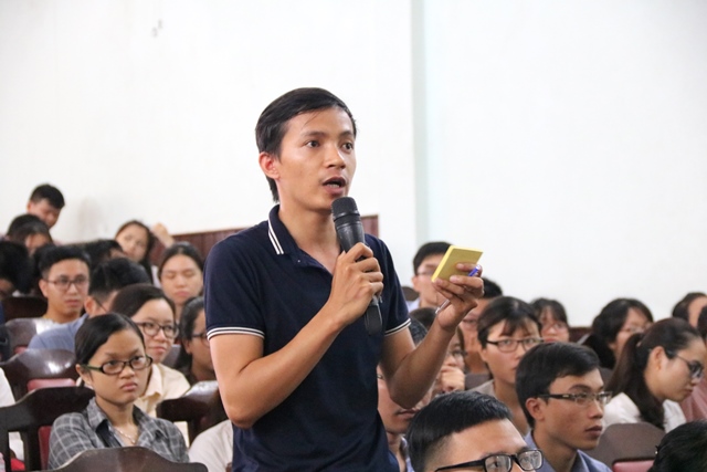 Tại hội thảo, một số sinh viên bày tỏ thắc mắc liên quan đến dự án và được các cán bộ phụ trách, tham gia dự án giải đáp kỹ.