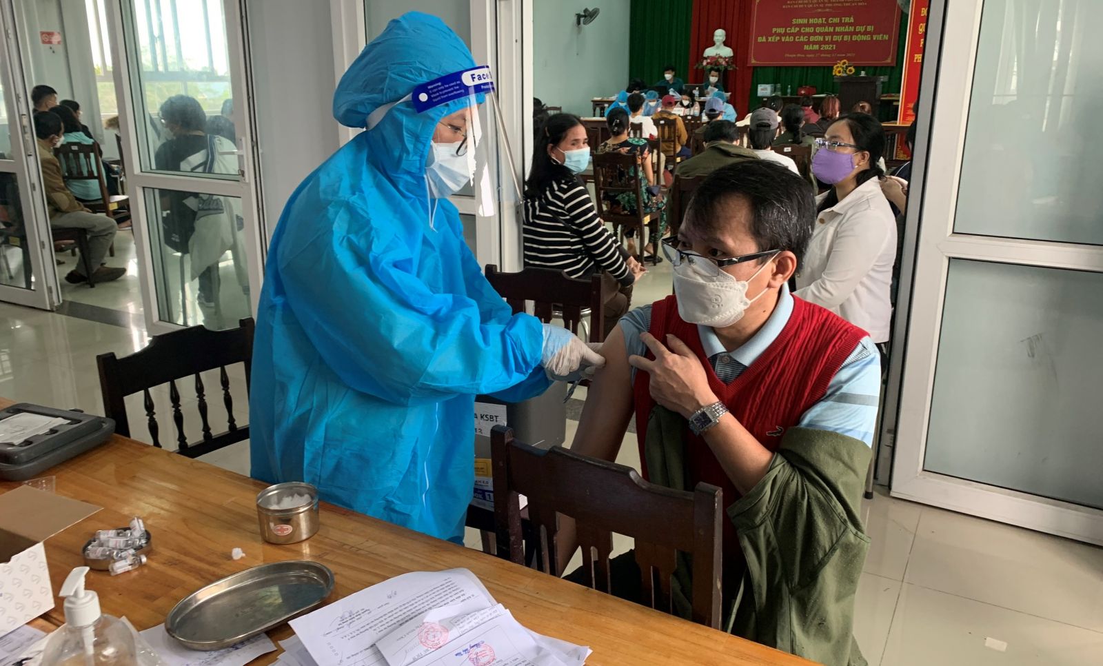 Tiêm vắc-xin phòng COVID-19 cho người dân ở TP. Huế. Ảnh: Th. Anh