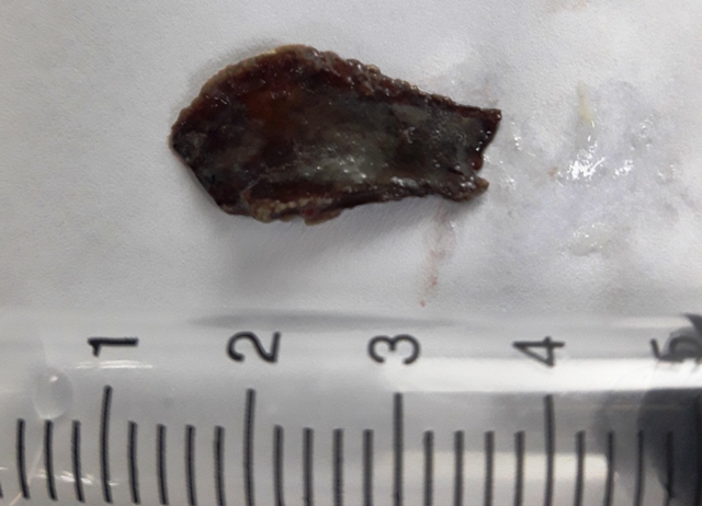 Ngày 26/7, Bệnh viện Trung ương Huế cơ sở 2 cho biết, các bác sĩ vừa thực hiện thành công ca gắp dị vật có kích thước khoảng 2,5cm x 1,2cm "nằm quên" 4 năm trong phế quản của bệnh nhân Lê C. (63 tuổi) ở Hải Sơn, Hải Lăng (Quảng Trị).