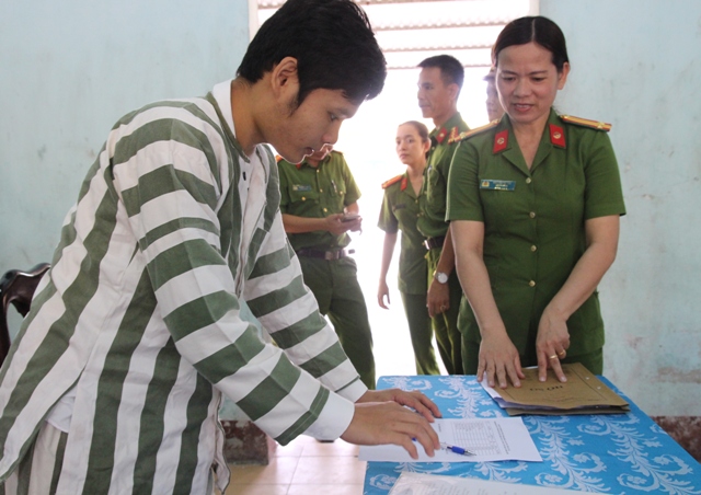 Cán bộ quản giáo Trại tạm giam Công an tỉnh triển khai một số thủ tục cần thiết đối với phạm nhân