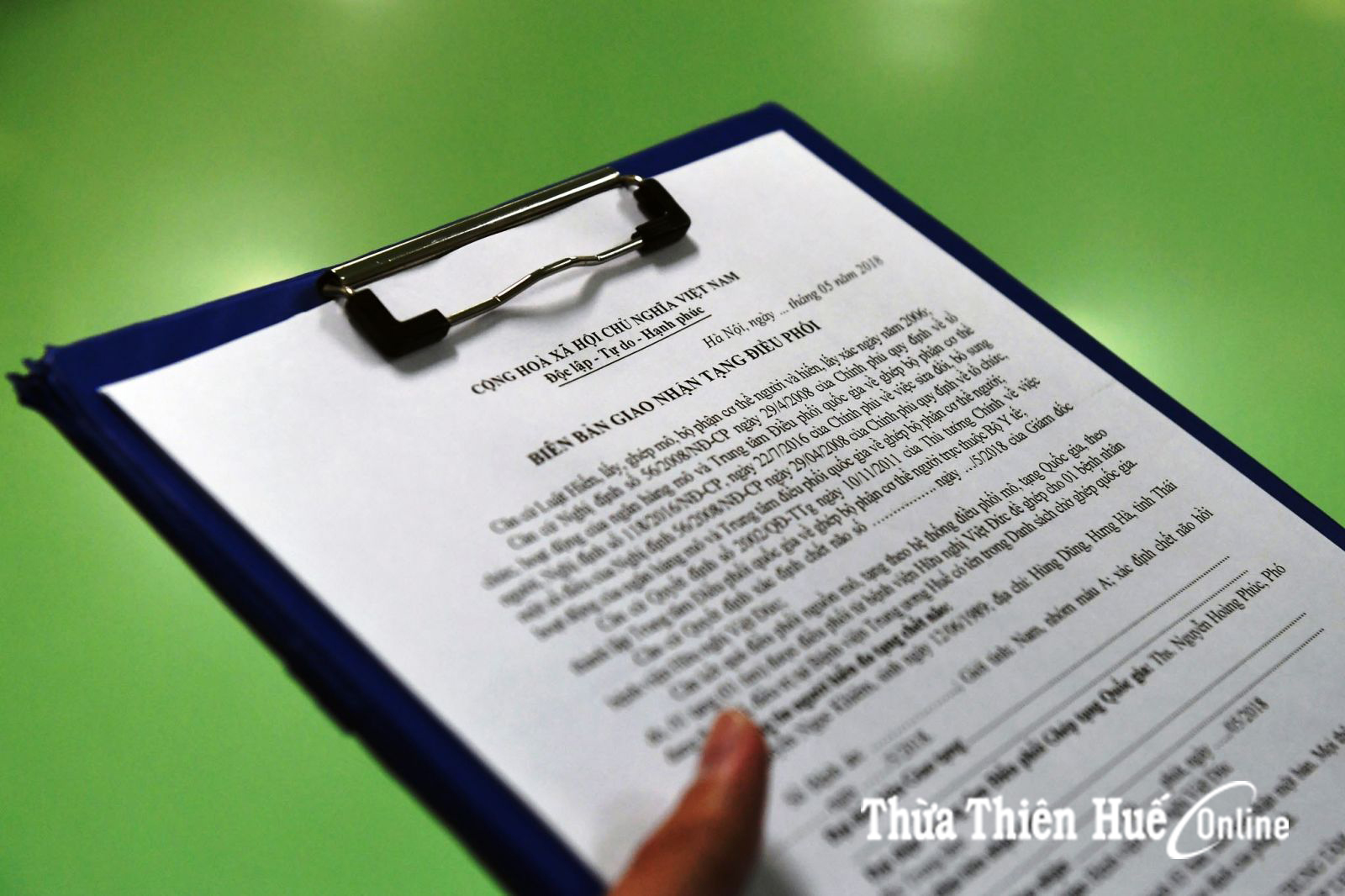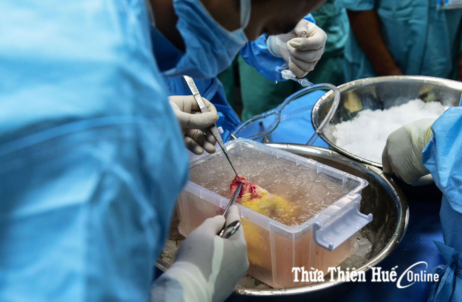 Ngày 15/5 nhận được nguồn tin của Bệnh viện Việt Đức. Bệnh viện Trung ương Huế cử một kíp bác sỹ đến Hà Nội phối hợp đánh giá sự tương thích của nguồn tạng người cho với người nhận ở Huế. Đến 3 giờ 00 ngày 16/5, khi vừa có kết quả cho biết phản ứng đọ chéo là tương thích với người nhận ghép tim tại Huế, Trung tâm điều phối ghép tạng quốc gia đã quyết định cho phép kíp mổ tim Bệnh viện Trung ương Huế phối hợp với các kíp mổ tại Hà Nội phẫu thuật lấy đa tạng hiến từ người đã chết não lúc 5 giờ 00 ngày 16/5.jpg)