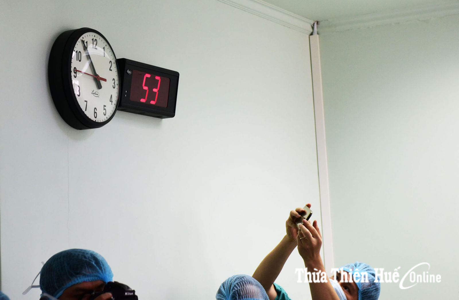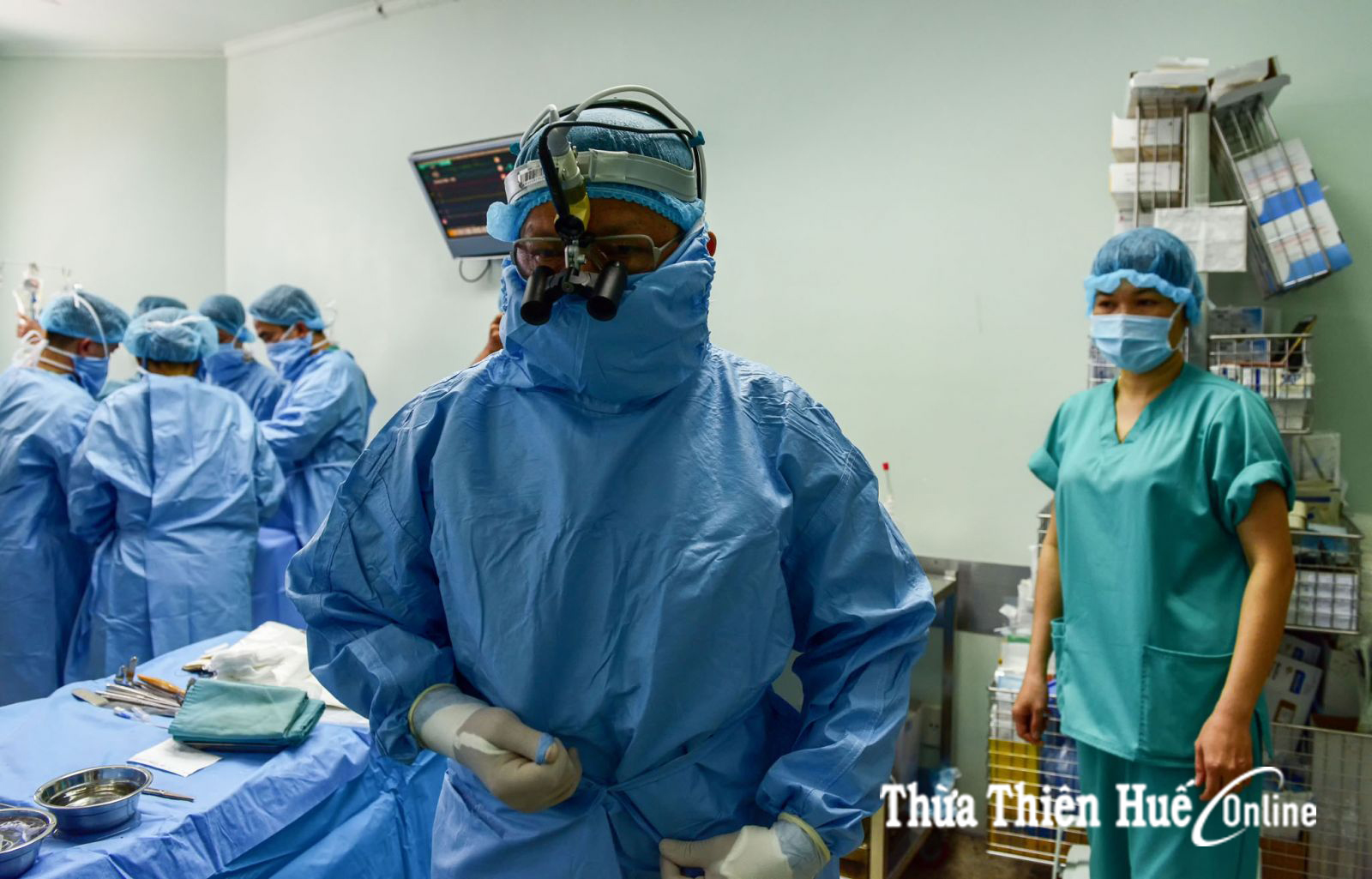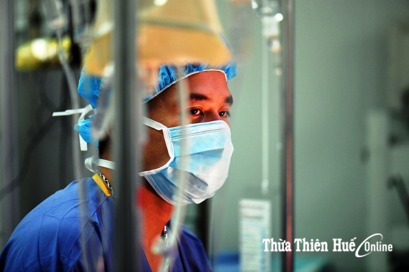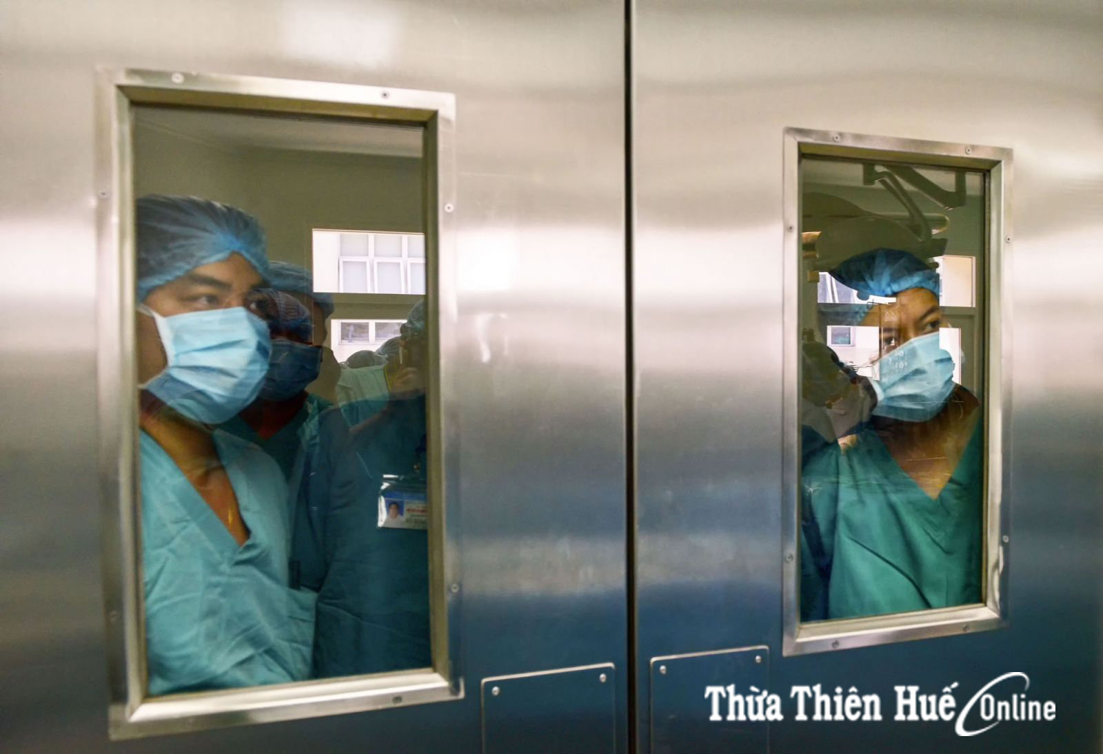 Ánh mắt chăm chú theo dõi của những bác sỹ, y tá bên ngoài phòng mổ. Ai cũng rất căng thẳng chờ đợi