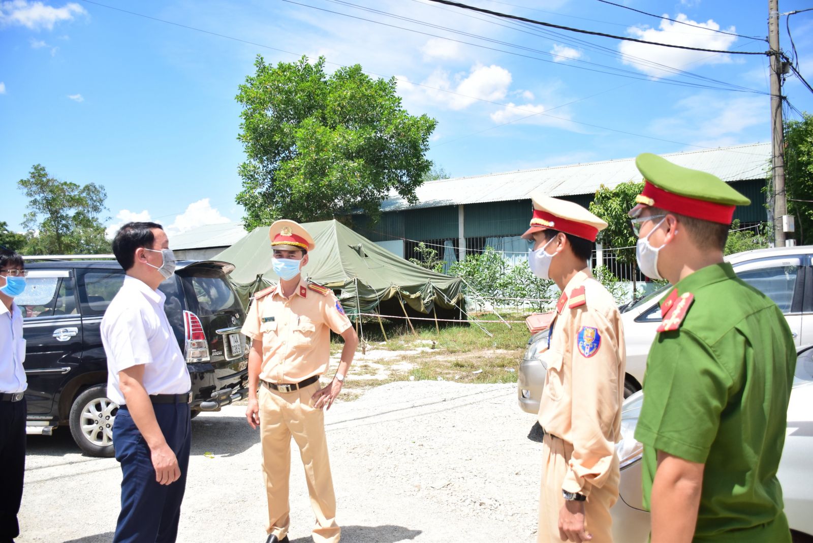 Phó Chủ tịch UBND tỉnh Phan Thiên Định (thứ hai, từ trái sang) thăm và động viên các lực lượng làm việc tại chốt